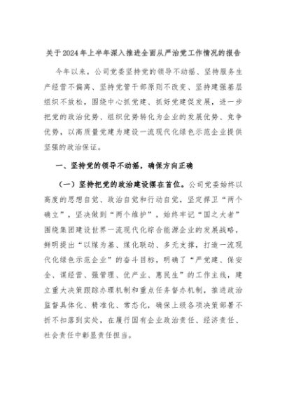【七哥公文】2024年:关于2024年上半年深入推进全面从严治党工作情况的报告+更多免费公文+VX:QiGeGongWen2024
