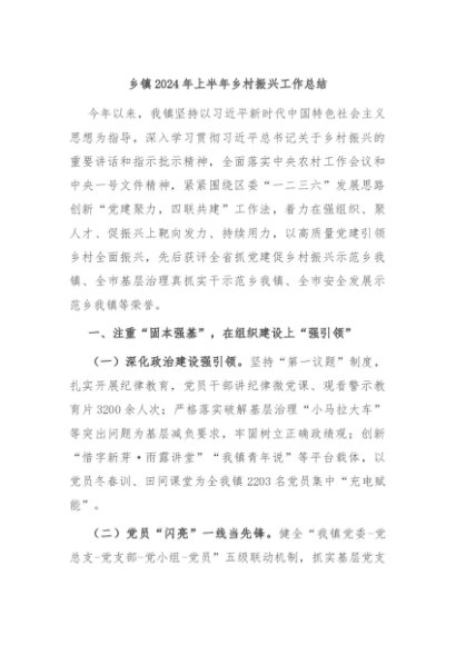 / 【七哥公文】2024年:乡镇2024年上半年乡村振兴工作总结+更多免费公文+VX:QiGeGongWen2024
