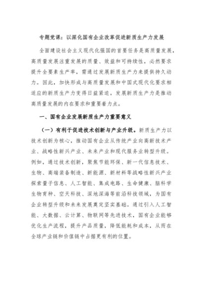 / 【七哥公文】2024年:专题党课:以深化国有企业改革促进新质生产力发展+更多免费公文+VX:QiGeGongWen2024