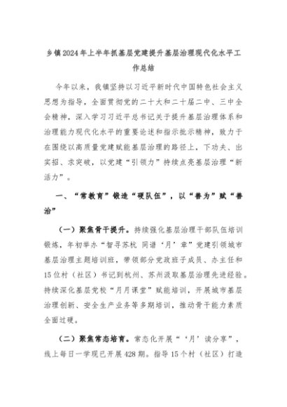 【七哥公文】2024年:乡镇2024年上半年抓基层党建提升基层治理现代化水平工作总结+更多免费公文+VX:QiGeGongWen2024