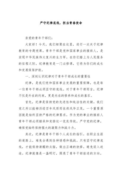 【七哥公文】2024年:严守纪律底线,担当青春使命+更多免费公文+VX:QiGeGongWen2024