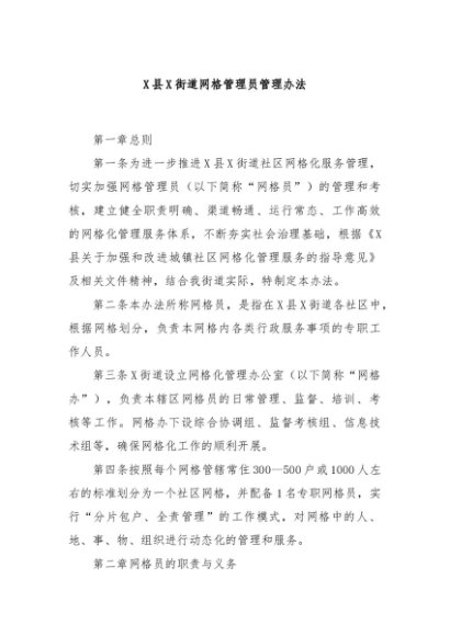 / 【七哥公文】2024年:X县X街道网格管理员管理办法+更多免费公文+VX:QiGeGongWen2024