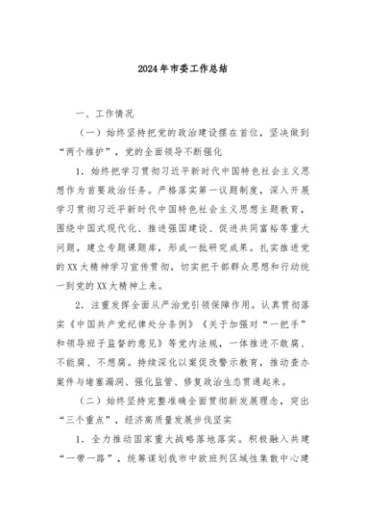 / 【七哥公文】2024年:2024年市委工作总结+更多免费公文+VX:QiGeGongWen2024