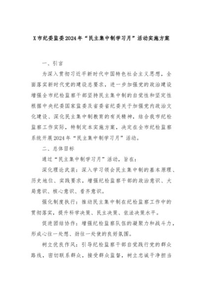 【七哥公文】2024年:X市纪委监委2024年“民主集中制学习月”活动实施方案+更多免费公文+VX:QiGeGongWen2024