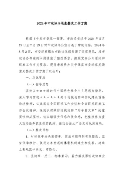 / 【七哥公文】2024年:2024年市政协办巡查整改工作方案+更多免费公文+VX:QiGeGongWen2024