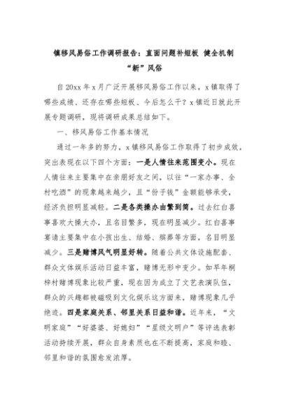 【七哥公文】2024年:镇移风易俗工作调研报告:直面问题补短板 健全机制“新”风俗+更多免费公文+VX:QiGeGongWen2024