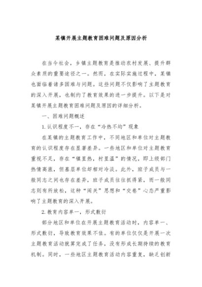 / 【七哥公文】2024年:某镇开展主题教育困难问题及原因分析+更多免费公文+VX:QiGeGongWen2024