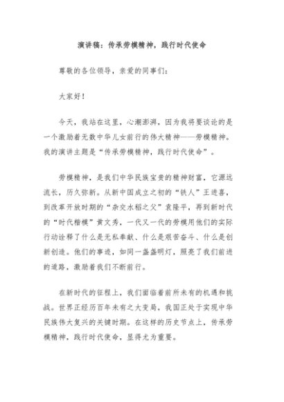 / 【七哥公文】2024年:演讲稿:传承劳模精神,践行时代使命+更多免费公文+VX:QiGeGongWen2024