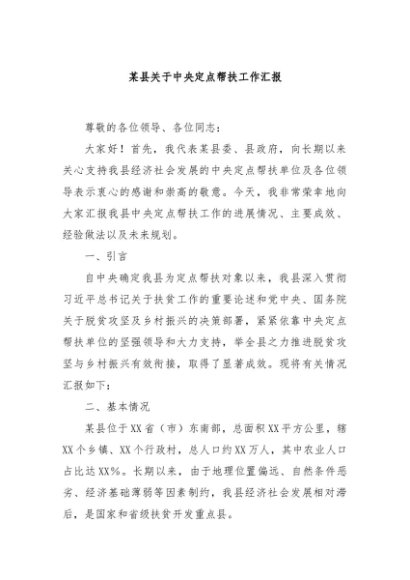 / 【七哥公文】2024年:某县关于中央定点帮扶工作汇报+更多免费公文+VX:QiGeGongWen2024