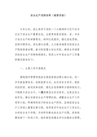 / 【七哥公文】2024年:安全生产述职材料(城管系统)+更多免费公文+VX:QiGeGongWen2024