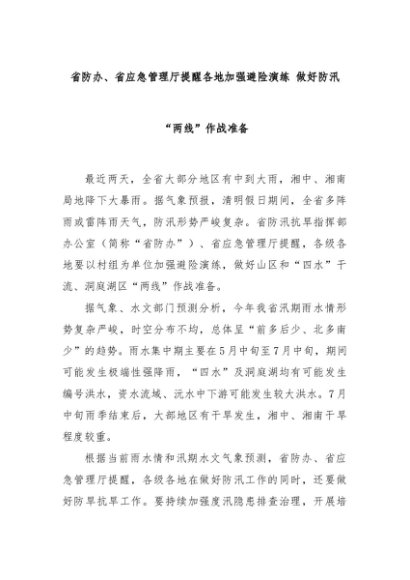 【七哥公文】2024年:省防办、省应急管理厅提醒各地加强避险演练 做好防汛“两线”作战准备+更多免费公文+VX:QiGeGongWen2024