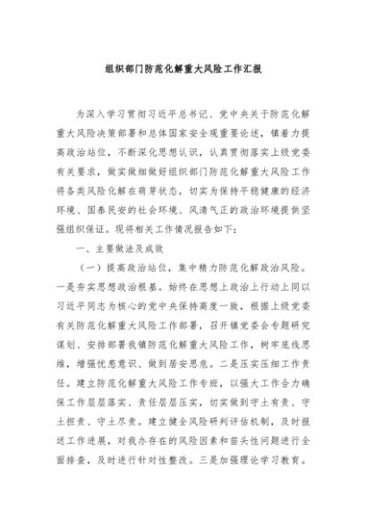 / 【七哥公文】2024年:组织部门防范化解重大风险工作汇报+更多免费公文+VX:QiGeGongWen2024