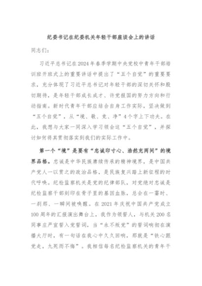 / 【七哥公文】2024年:纪委书记在纪委机关年轻干部座谈会上的讲话+更多免费公文+VX:QiGeGongWen2024