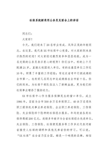 / 【七哥公文】2024年:社保系统新录用公务员见面会上的讲话+更多免费公文+VX:QiGeGongWen2024