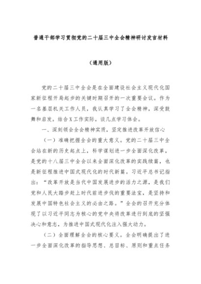 【七哥公文】2024年:普通干部学习贯彻党的二十届三中全会精神研讨发言材料(通用版)+更多免费公文+VX:QiGeGongWen2024