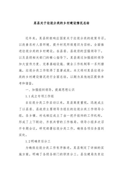 / 【七哥公文】2024年:某县关于垃圾分类的乡村建设情况总结+更多免费公文+VX:QiGeGongWen2024
