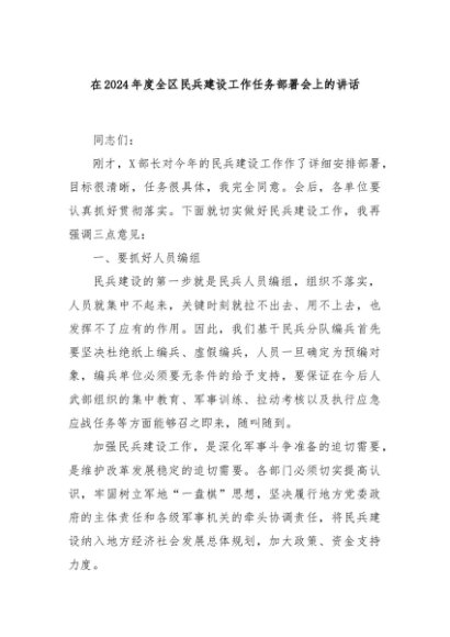 / 【七哥公文】2024年:在2024年度全区民兵建设工作任务部署会上的讲话+更多免费公文+VX:QiGeGongWen2024
