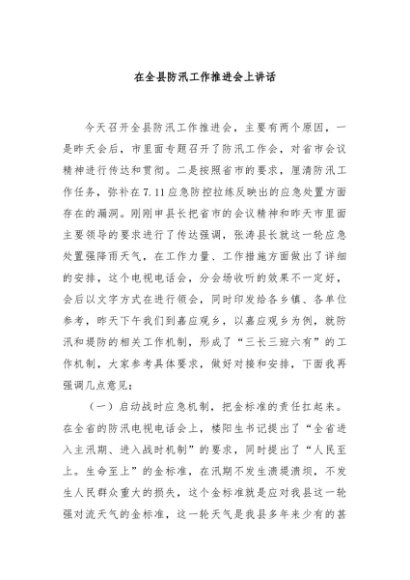 / 【七哥公文】2024年:在全县防汛工作推进会上讲话+更多免费公文+VX:QiGeGongWen2024