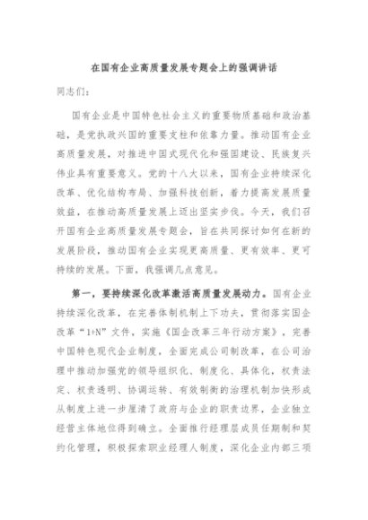 / 【七哥公文】2024年:在国有企业高质量发展专题会上的强调讲话+更多免费公文+VX:QiGeGongWen2024