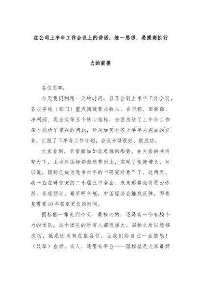 【七哥公文】2024年:在公司上半年工作会议上的讲话:统一思想,是提高执行力的前提+更多免费公文+VX:QiGeGongWen2024