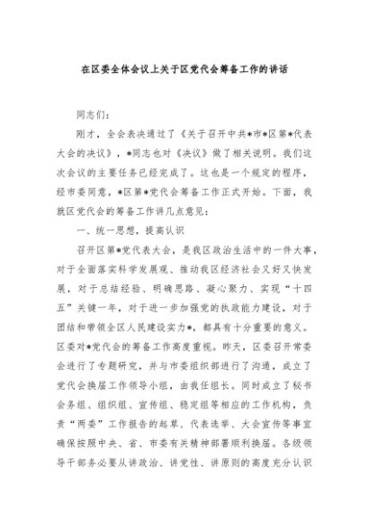 / 【七哥公文】2024年:在区委全体会议上关于区党代会筹备工作的讲话+更多免费公文+VX:QiGeGongWen2024