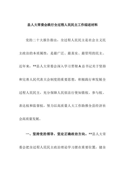 / 【七哥公文】2024年:县人大常委会践行全过程人民民主工作综述材料+更多免费公文+VX:QiGeGongWen2024