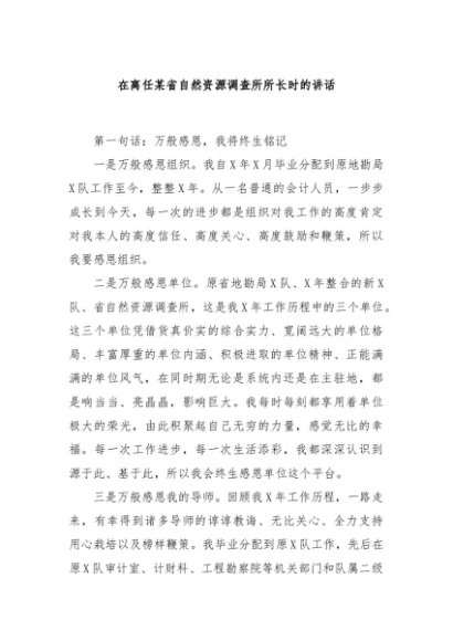 / 【七哥公文】2024年:在离任某省自然资源调查所所长时的讲话+更多免费公文+VX:QiGeGongWen2024