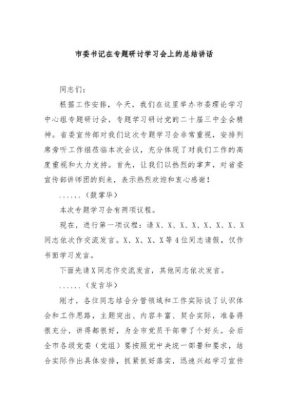 / 【七哥公文】2024年:市委书记在专题研讨学习会上的总结讲话+更多免费公文+VX:QiGeGongWen2024