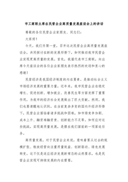 / 【七哥公文】2024年:市工商联主席在民营企业高质量发展座谈会上的讲话+更多免费公文+VX:QiGeGongWen2024