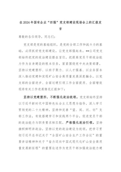 【七哥公文】2024年:在2024年国有企业“四强”党支部建设现场会上的汇报发言+更多免费公文+VX:QiGeGongWen2024