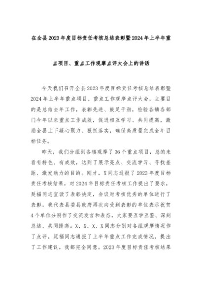 【七哥公文】2024年:在全县2023年度目标责任考核总结表彰暨2024年上半年重点项目+更多免费公文+VX:QiGeGongWen2024