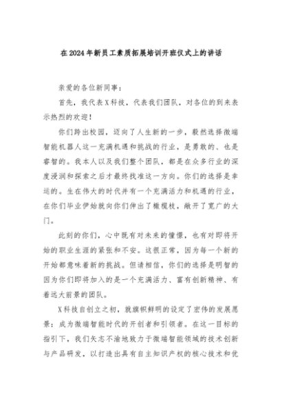 / 【七哥公文】2024年:在2024年新员工素质拓展培训开班仪式上的讲话+更多免费公文+VX:QiGeGongWen2024