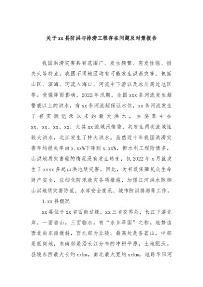 【七哥公文】2024年:关于xx县防洪与排涝工程存在问题及对策报告+更多免费公文+VX:QiGeGongWen2024