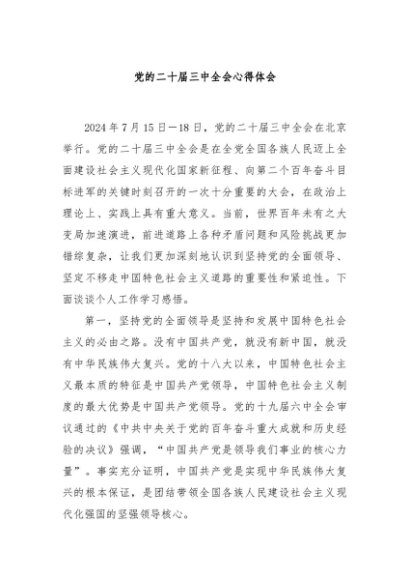 / 【七哥公文】2024年:党的二十届三中全会心得体会+更多免费公文+VX:QiGeGongWen2024