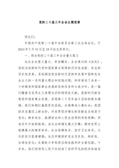 / 【七哥公文】2024年:党的二十届三中全会主题党课+更多免费公文+VX:QiGeGongWen2024