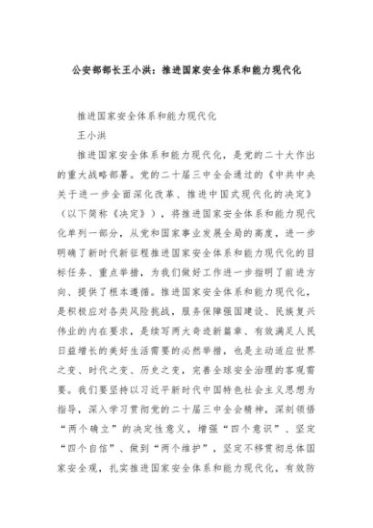 / 【七哥公文】2024年:公安部部长王小洪:推进国家安全体系和能力现代化+更多免费公文+VX:QiGeGongWen2024