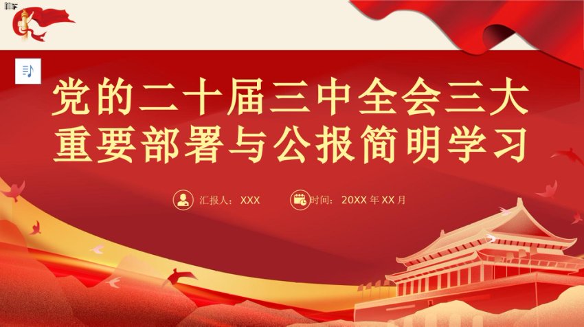 【七哥公文】2024年:二十届三中全会三大重要部署与公报简明学习党建党课PPT+更多免费公文+VX:QiGeGongWen2024