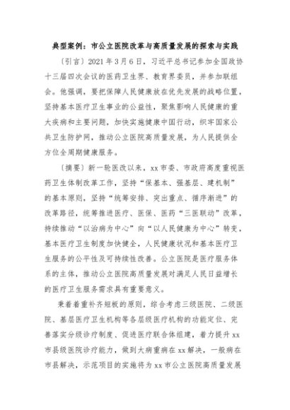 / 【七哥公文】2024年:典型案例:市公立医院改革与高质量发展的探索与实践+更多免费公文+VX:QiGeGongWen2024