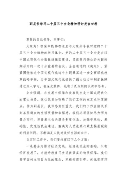 / 【七哥公文】2024年:副县长学习二十届三中全会精神研讨发言材料+更多免费公文+VX:QiGeGongWen2024