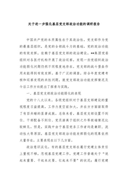 / 【七哥公文】2024年:关于进一步强化基层党支部政治功能的调研报告+更多免费公文+VX:QiGeGongWen2024