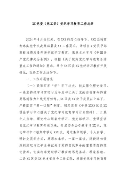 / 【七哥公文】2024年:XX党委(党工委)党纪学习教育工作总结+更多免费公文+VX:QiGeGongWen2024