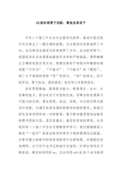 / 【七哥公文】2024年:XX组织部勇于创新,锻造改革实干+更多免费公文+VX:QiGeGongWen2024
