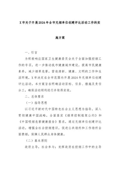 【七哥公文】2024年:X市关于开展2024年全市无烟单位创建评比活动工作的实施方案+更多免费公文+VX:QiGeGongWen2024