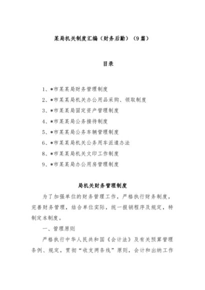 【七哥公文】2024年:(9篇)某局机关制度汇编(财务后勤)+更多免费公文+VX:QiGeGongWen2024