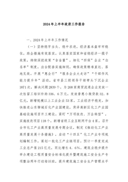 【七哥公文】2024年:2024年上半年政府工作报告+更多免费公文+VX:QiGeGongWen2024