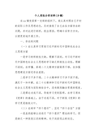 / 【七哥公文】2024年:个人党性分析材料(乡镇)+更多免费公文+VX:QiGeGongWen2024