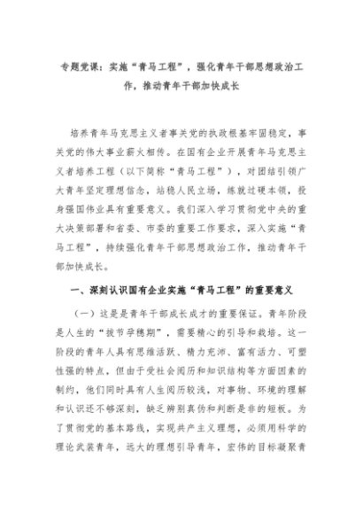【七哥公文】2024年:专题党课:实施“青马工程”,强化青年干部思想政治工作,推动青年干部加快成长+更多免费公文+VX:QiGeGongWen2024