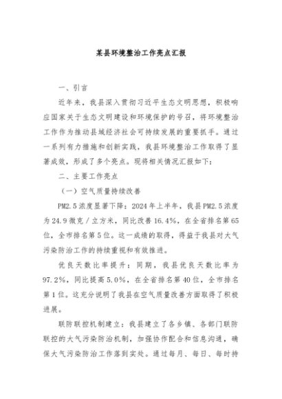 / 【七哥公文】2024年:某县环境整治工作亮点汇报+更多免费公文+VX:QiGeGongWen2024