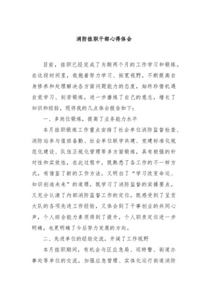 【七哥公文】2024年:消防挂职干部心得体会+更多免费公文+VX:QiGeGongWen2024