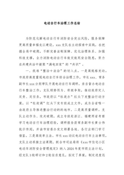 / 【七哥公文】2024年:电动自行车治理工作总结+更多免费公文+VX:QiGeGongWen2024